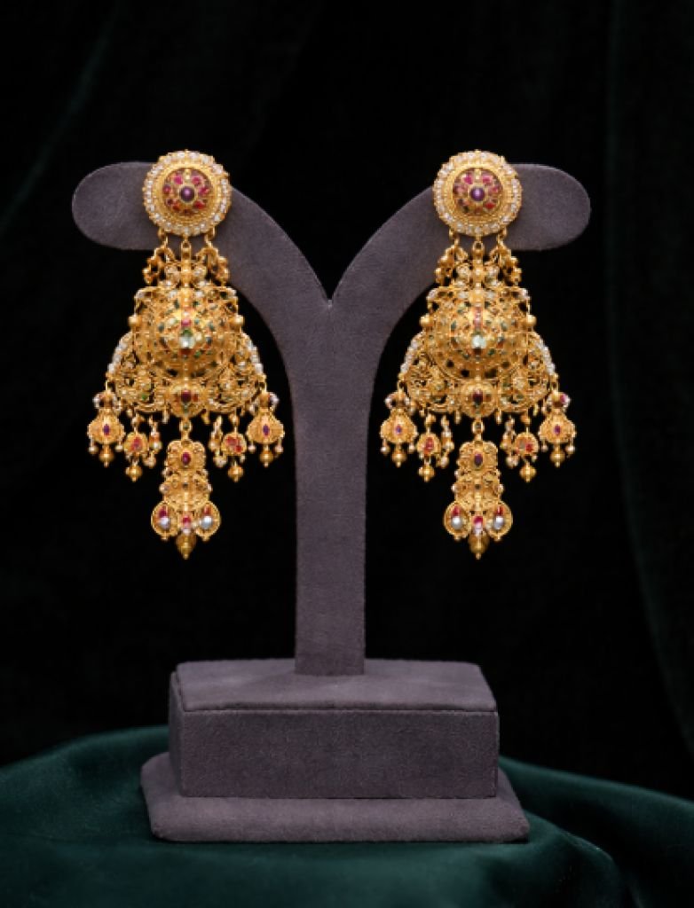 Antique Meenakari Pendant Necklace Set with Hanging Drops – 92.5 Silver Gold Plated Traditional Jewellery | Divine Jewellery
