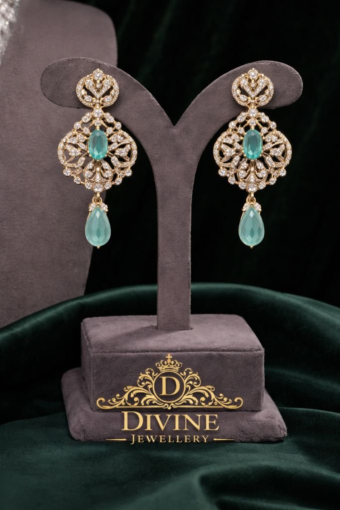 Aqua Stone Layered Necklace Set with Statement Pendant | 92.5 Silver Gold Plated Jewellery by Divine Jewellery