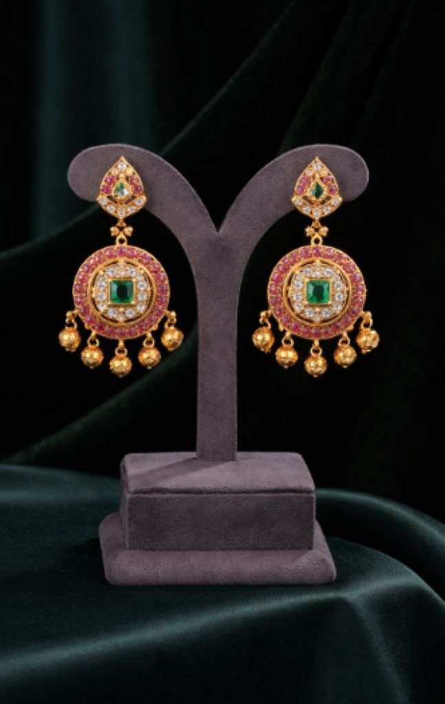 Elevate your style with this classic gold beaded necklace set crafted in 92.5 silver with gold plating. Featuring a kundan pendant with pink and green stone accents and matching earrings.