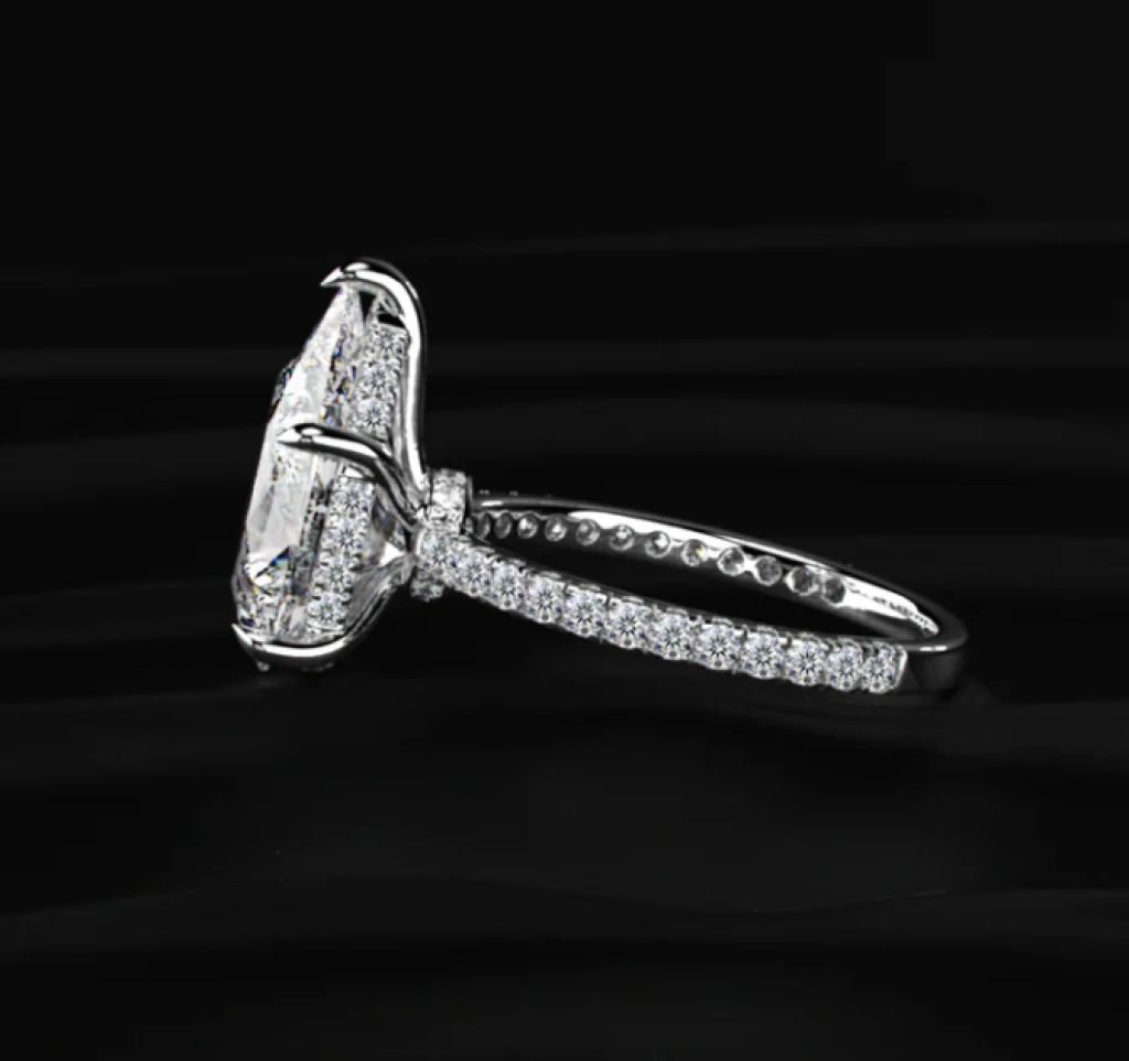 DIVINE 92.5 Sterling Silver Pear Cut Solitaire Ring – Platinum Plated Pave Band