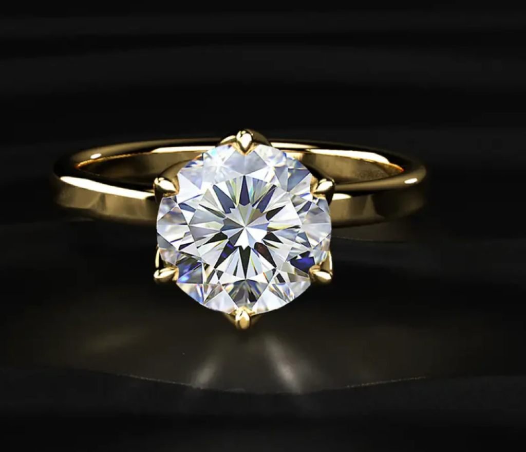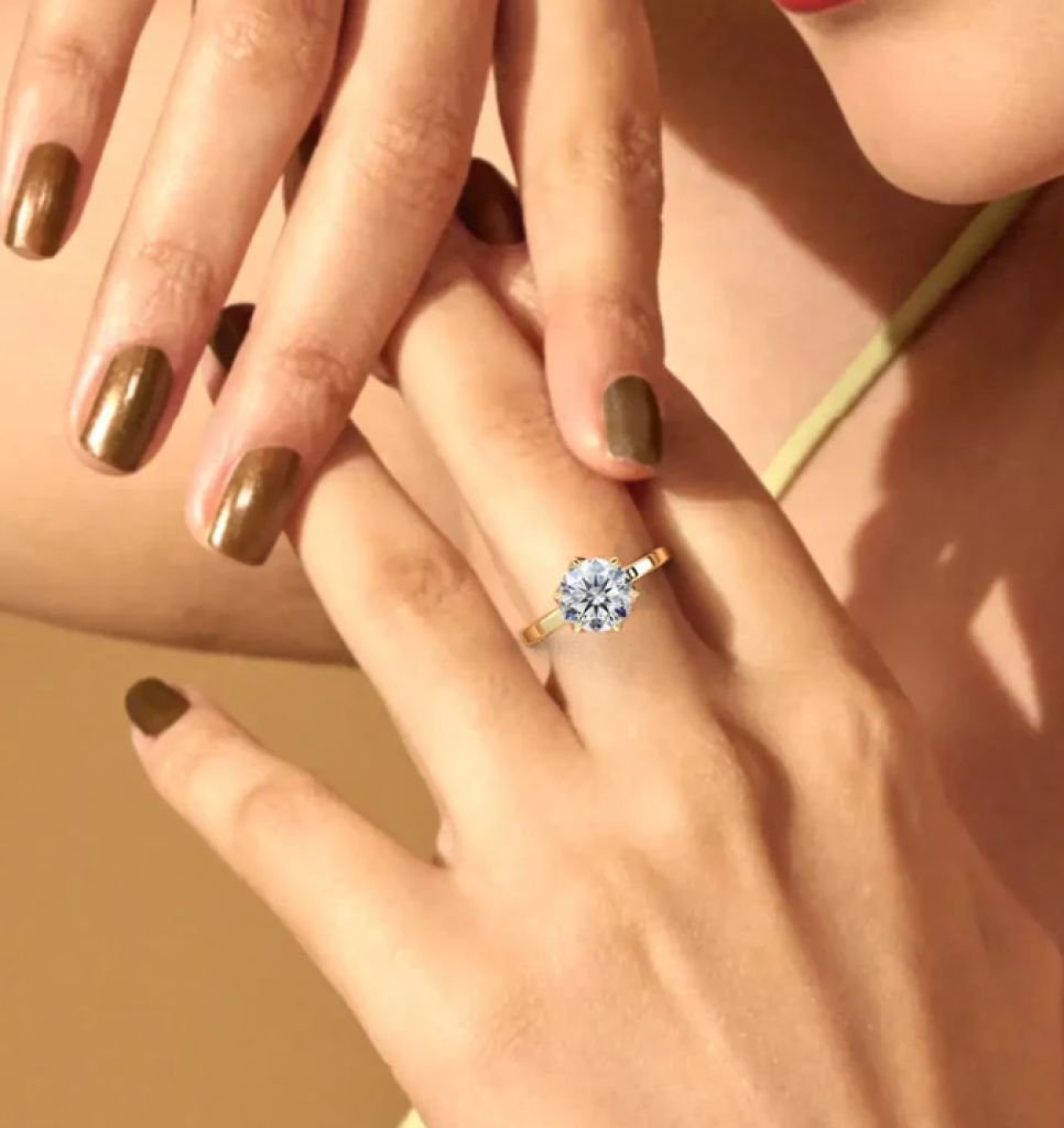 DIVINE 92.5 Sterling Silver Round Brilliant Cut Solitaire Ring – Gold Plated 6-Prong Classic