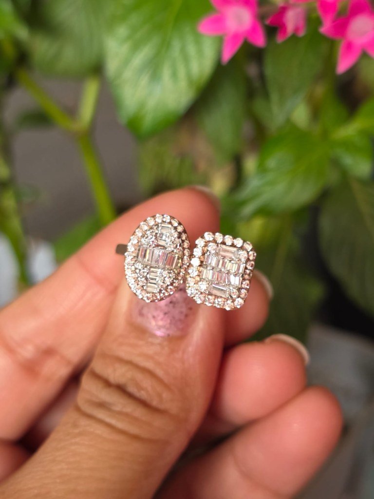 The DIVINE Dual Halo Twin-Cut Ring is crafted for women who love bold creativity and luxury detailing. This exclusive design features two distinct centerpiece clusters placed side-by-side – one rectangular and one oval – symbolising harmony between structure and softness.