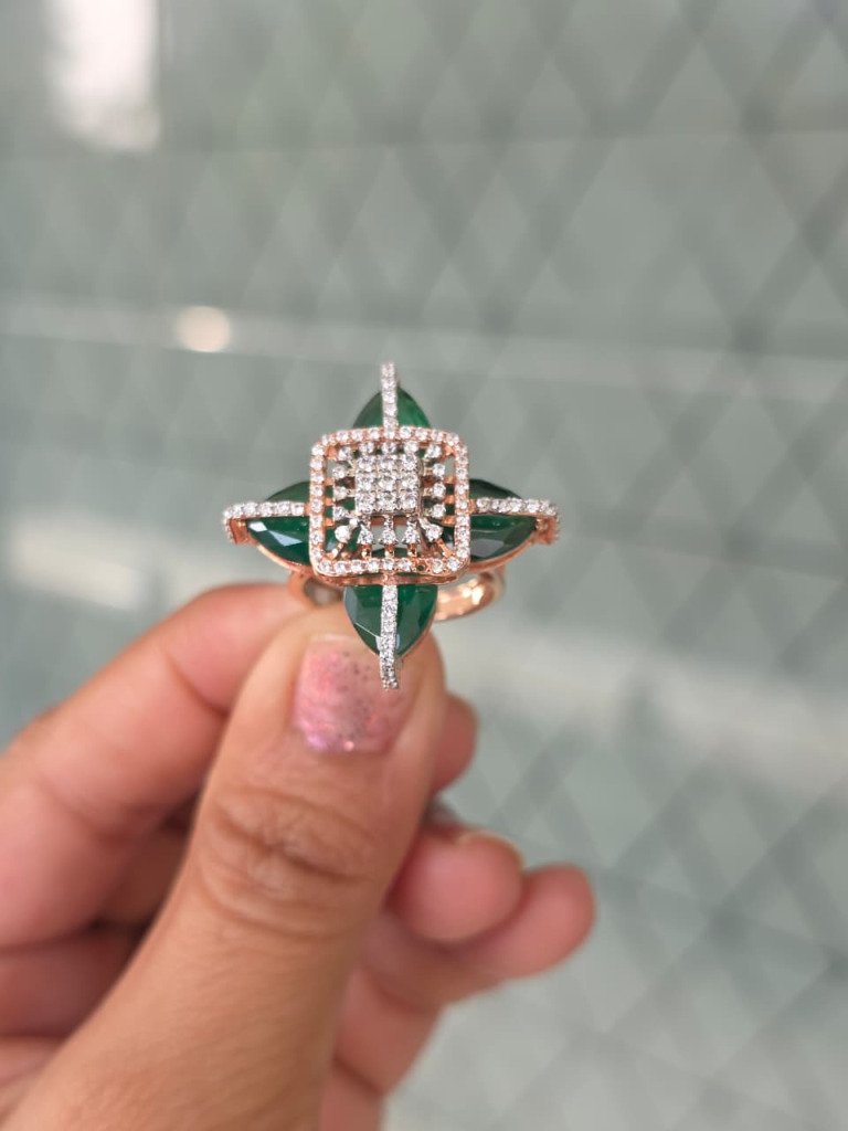 Step into bold luxury with the DIVINE Emerald Crossfire Ring, a striking masterpiece designed for women who love unique, high-fashion jewellery. This exclusive ring features rich emerald-green marquise crystals arranged in a crossfire pattern, crowned with a sparkling square halo of brilliant stones at the center.