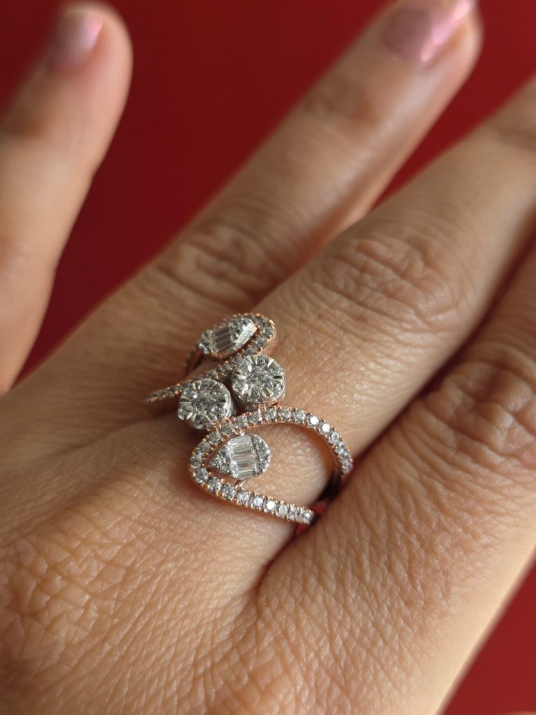 The DIVINE Infinity Curve Designer Ring is a statement piece created for women who love modern luxury with a graceful touch. This ring showcases a beautifully engineered open-band structure, where soft flowing curves wrap around the finger in an infinity-inspired silhouette.