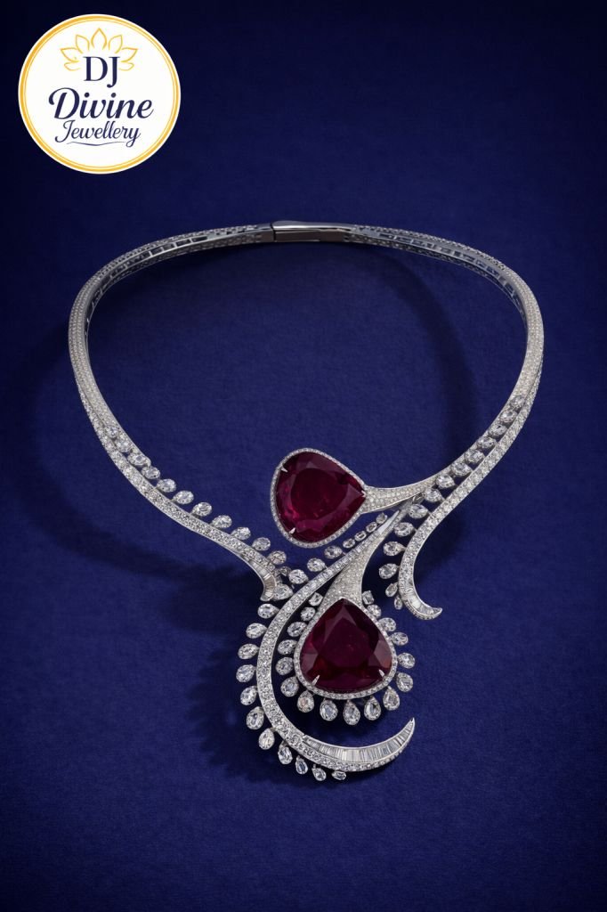 DIVINE Luxury Ruby Red Statement Necklace – Diamond-Style Designer Choker Necklace for Wedding & Party Wear
