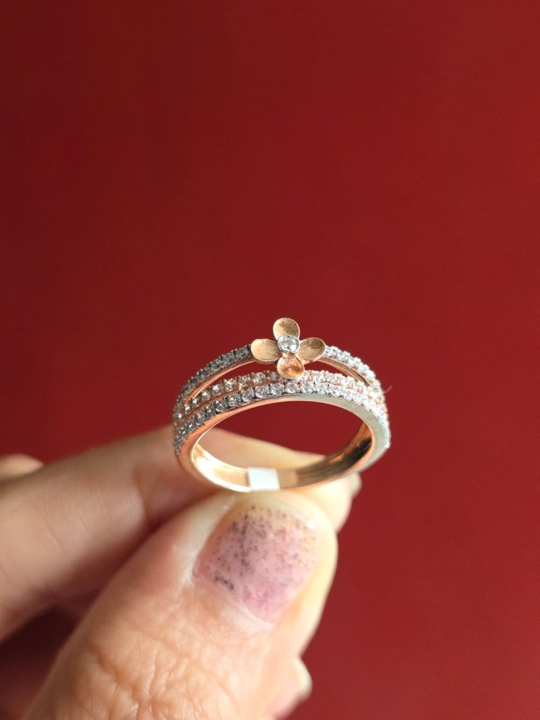 DIVINE Rose Gold Floral Crystal Ring for Women – Triple Band Micro Pave Zircon Flower Ring