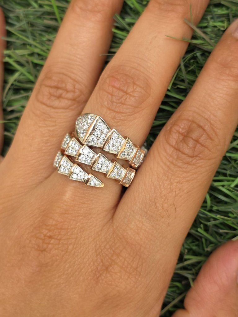 DIVINE “Serpente Lumière” Couture Ring – Pavé Crystal Serpent Statement Ring in Rose Gold Finish