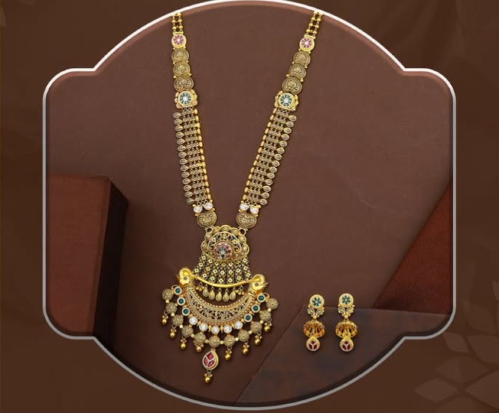 Divine Jewellery 92.5 Silver Gold Plated Long Necklace Set with Earrings | Traditional Bridal Statement Jewellery Set for Women