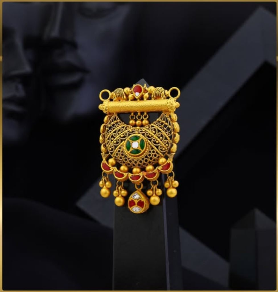 Elegant temple-style pendant crafted in 92.5 silver with premium gold plating. Featuring intricate filigree detailing with multicolor stone accents, perfect for festive and traditional wear.