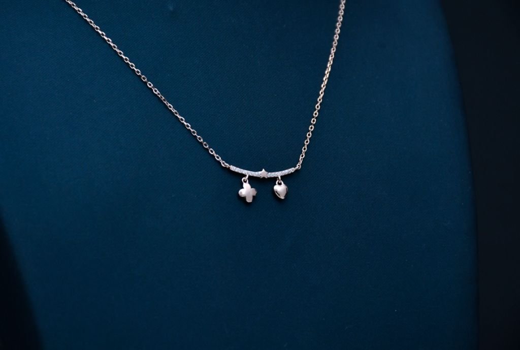 A delicate bar-style necklace featuring twin mini charms for a modern, minimal everyday look.