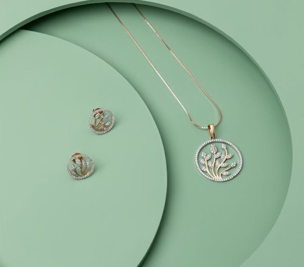 Divine Jewellery Elegant Tree of Life Round Designer Pendant Necklace Set with Crystal Halo