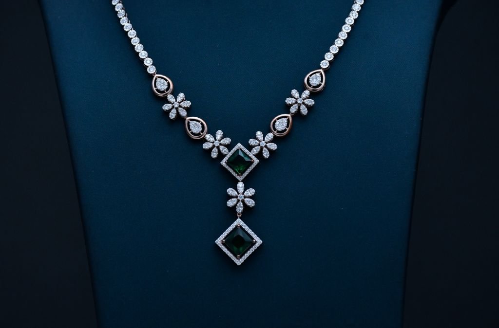 Divine Jewellery Emerald Bloom Diamond-Style Necklace Set