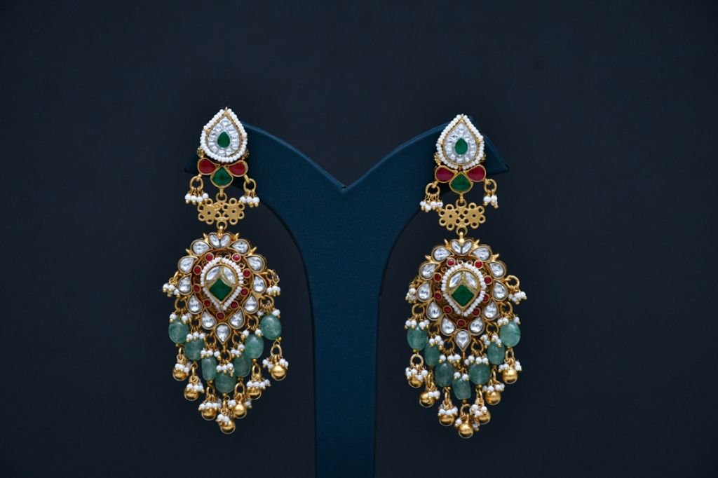 Divine Jewellery Royal Polki Emerald Bridal Long Necklace Set with Multi-Layer Filigree Chain