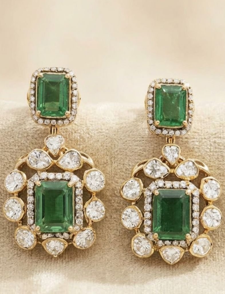 Sophisticated emerald-cut necklace set with polki-style detailing, crafted in 92.5 silver with gold plating—perfect for festive and bridal wear.