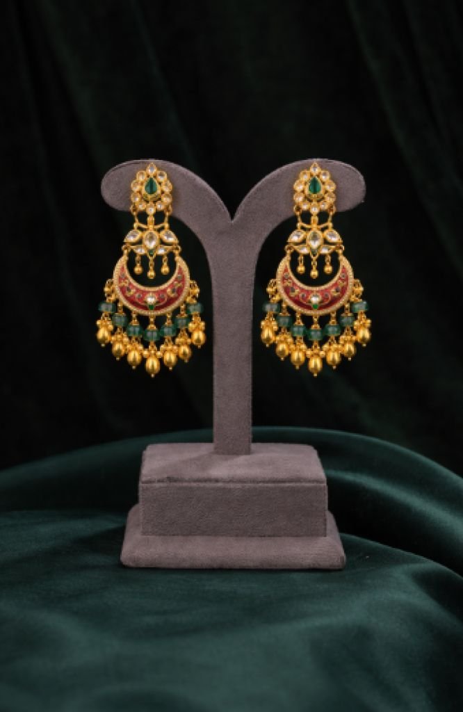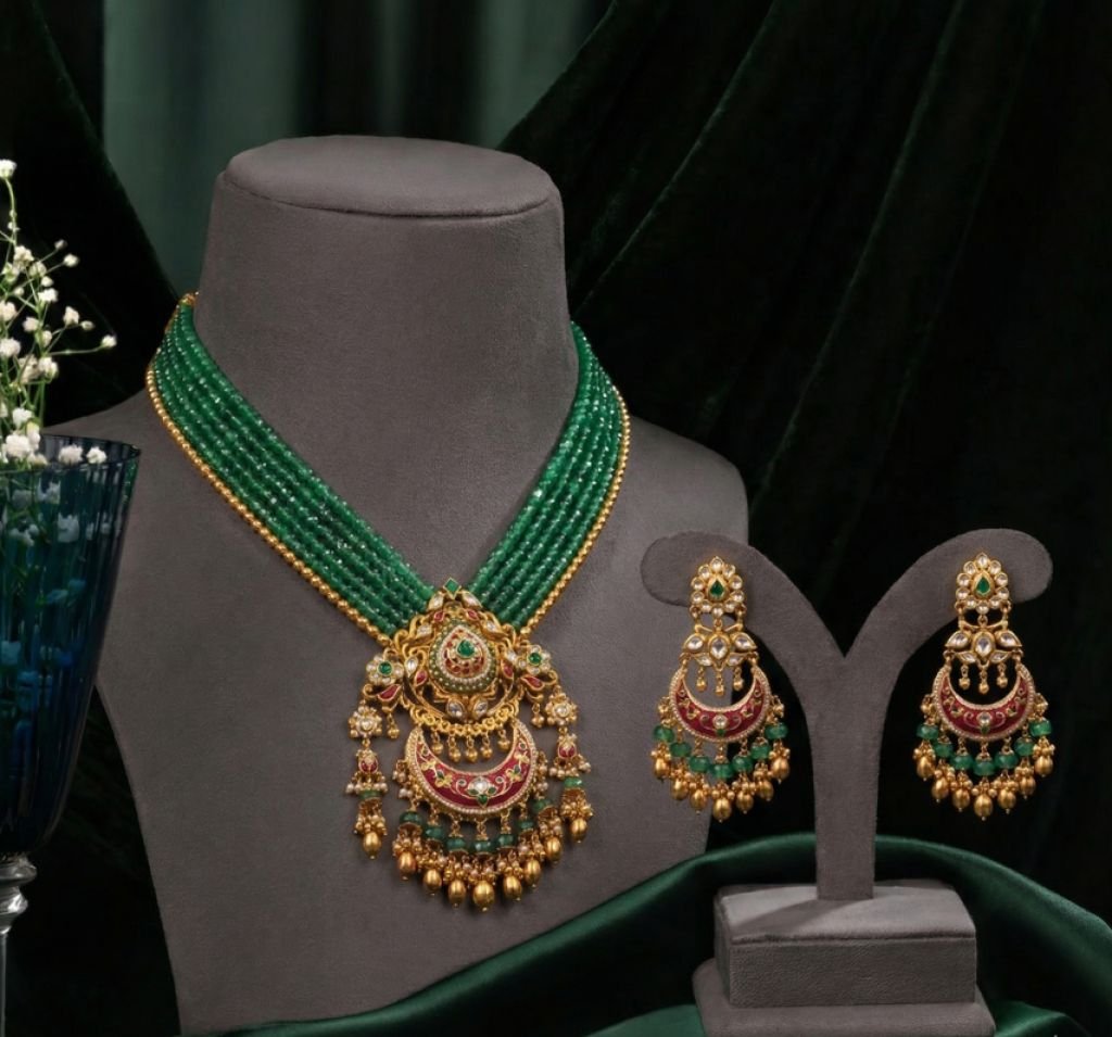 Elegant Green Beaded Temple Necklace Set with Kundan Pendant – 92.5 Silver Gold Plated Jewellery | Divine Jewellery
