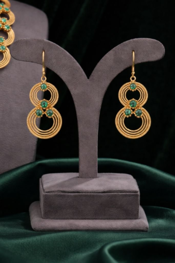 Elegant Green Stone Designer Necklace Set with Circular Pattern – 92.5 Silver Gold Plated Lightweight Jewellery | Divine Jewellery