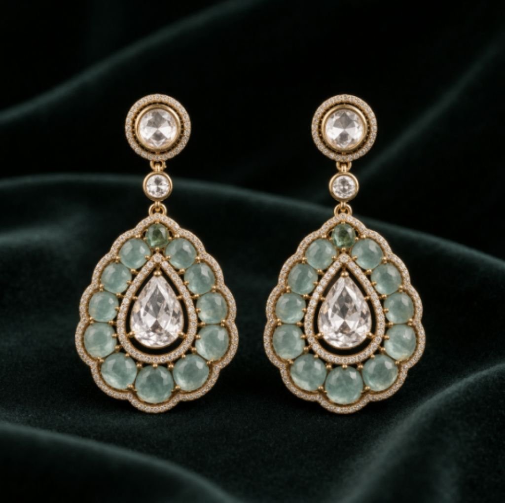 Elegant Mint Green Polki Style Pendant Necklace Set with Kundan Detailing – 92.5 Silver Gold Plated Jewellery | Divine Jewellery