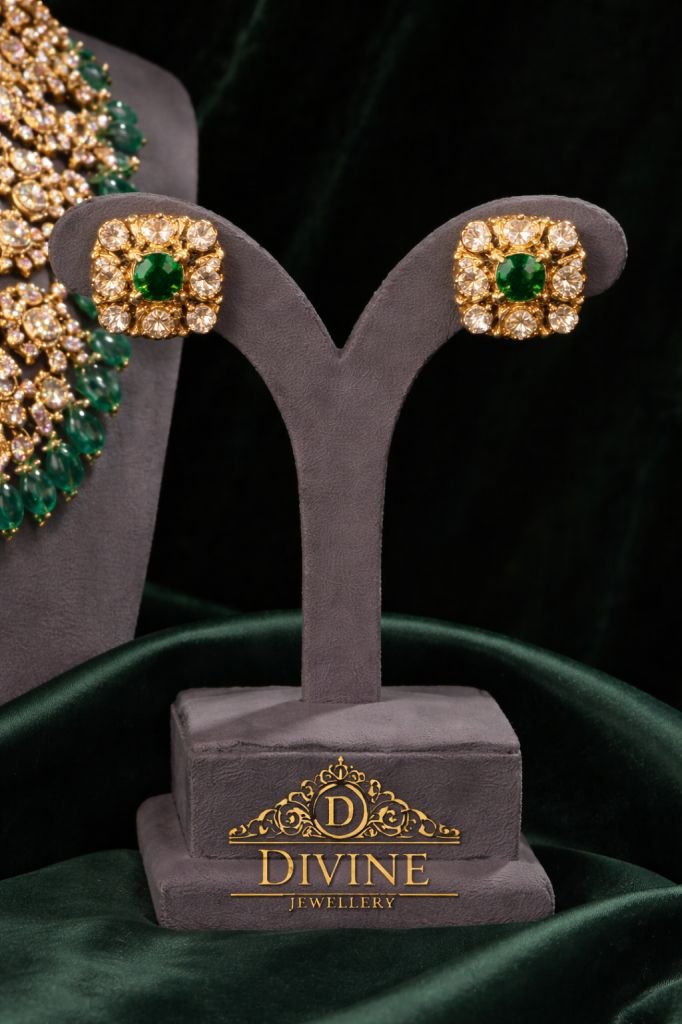 Emerald Kundan Choker Necklace Set with Green Drops | 92.5 Silver Gold Plated Jewellery by Divine Jewellery