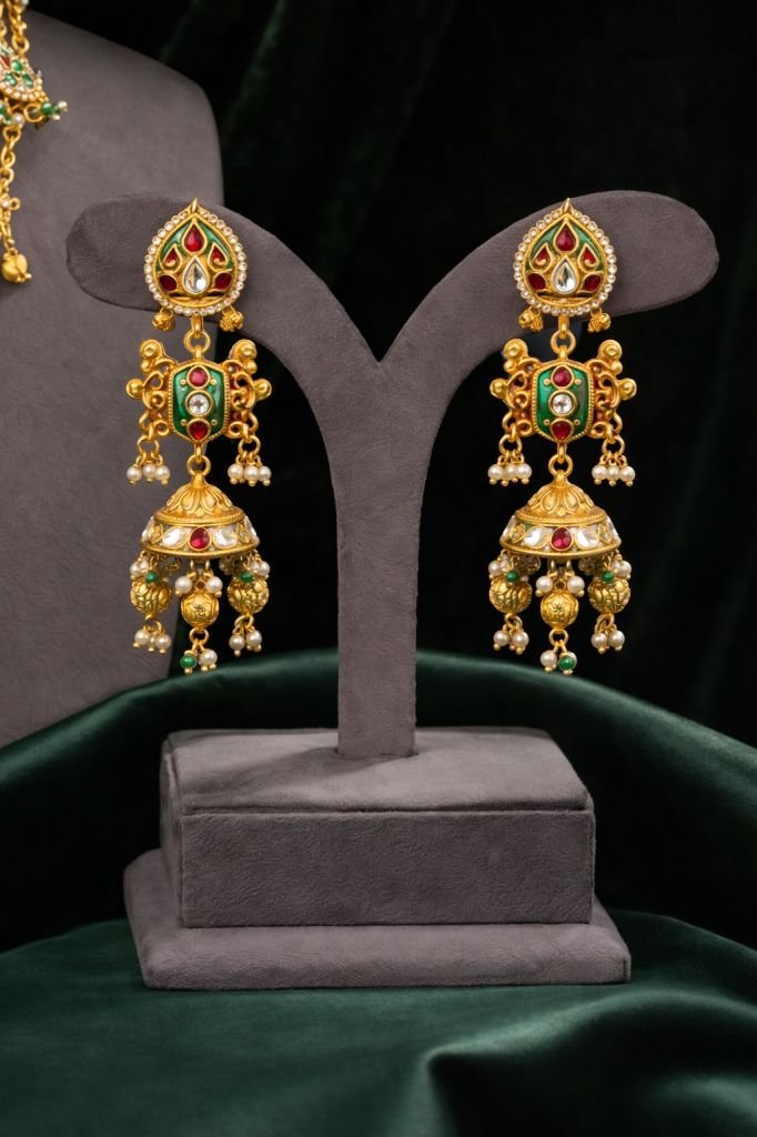 Grand Temple Long Necklace Set with Royal Pendant & Jhumka Earrings – 92.5 Silver Gold Plated Bridal Jewellery
