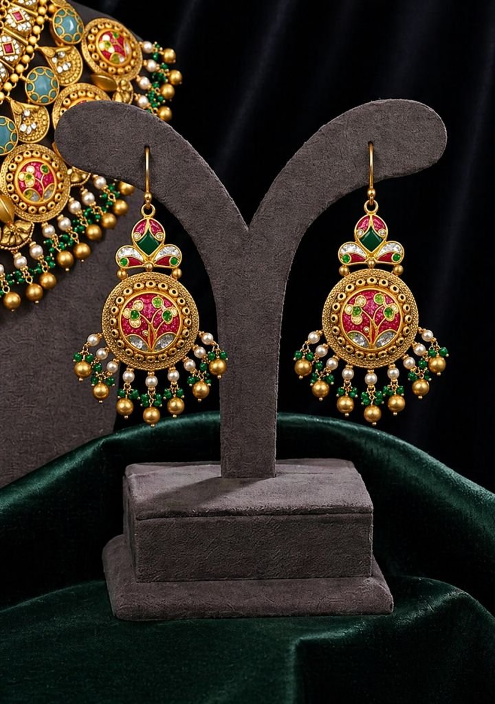 Grand Temple Meenakari Kundan Necklace Set with Coin Motifs & Pearl Drops – 92.5 Silver Gold Plated Bridal Jewellery