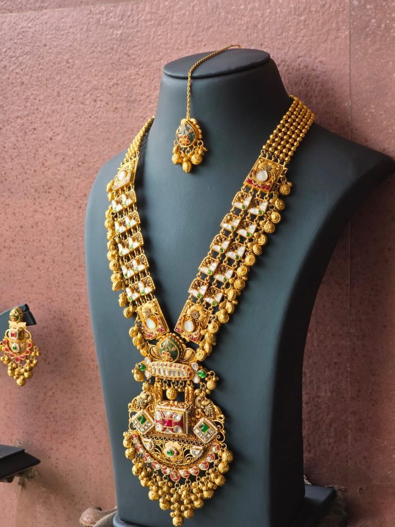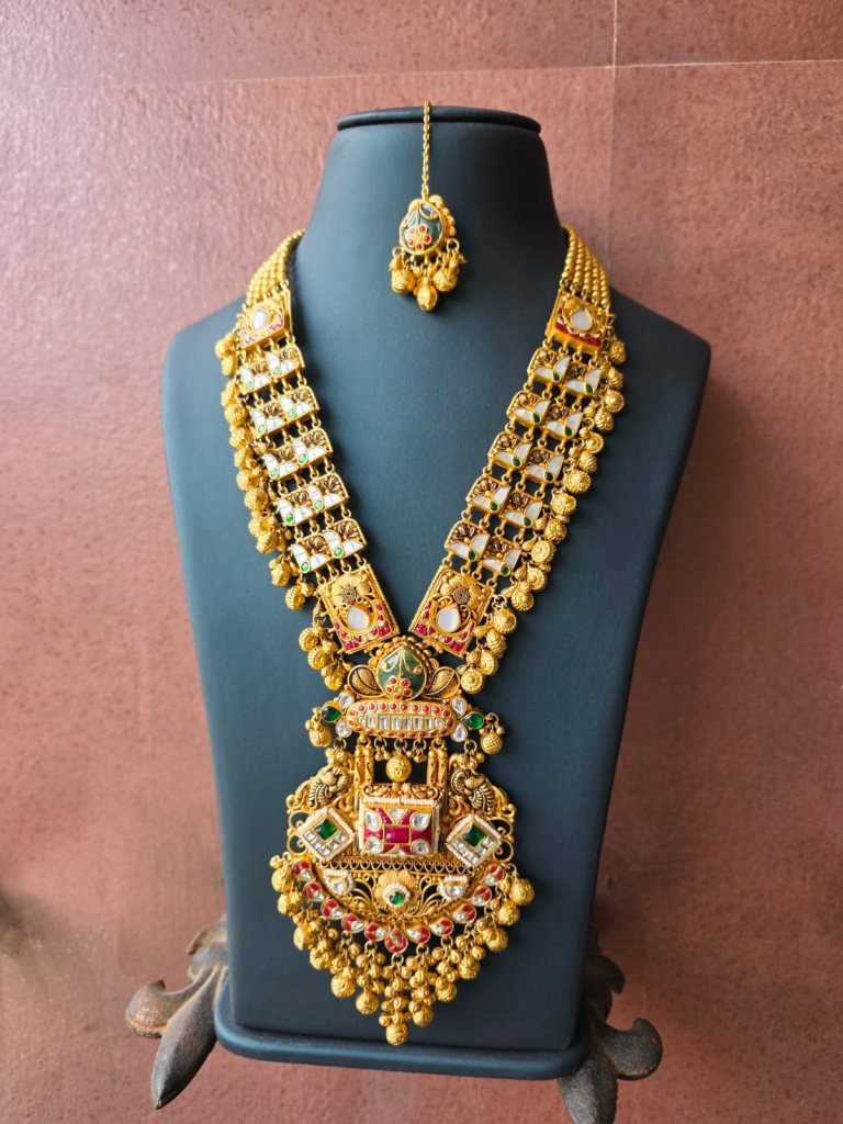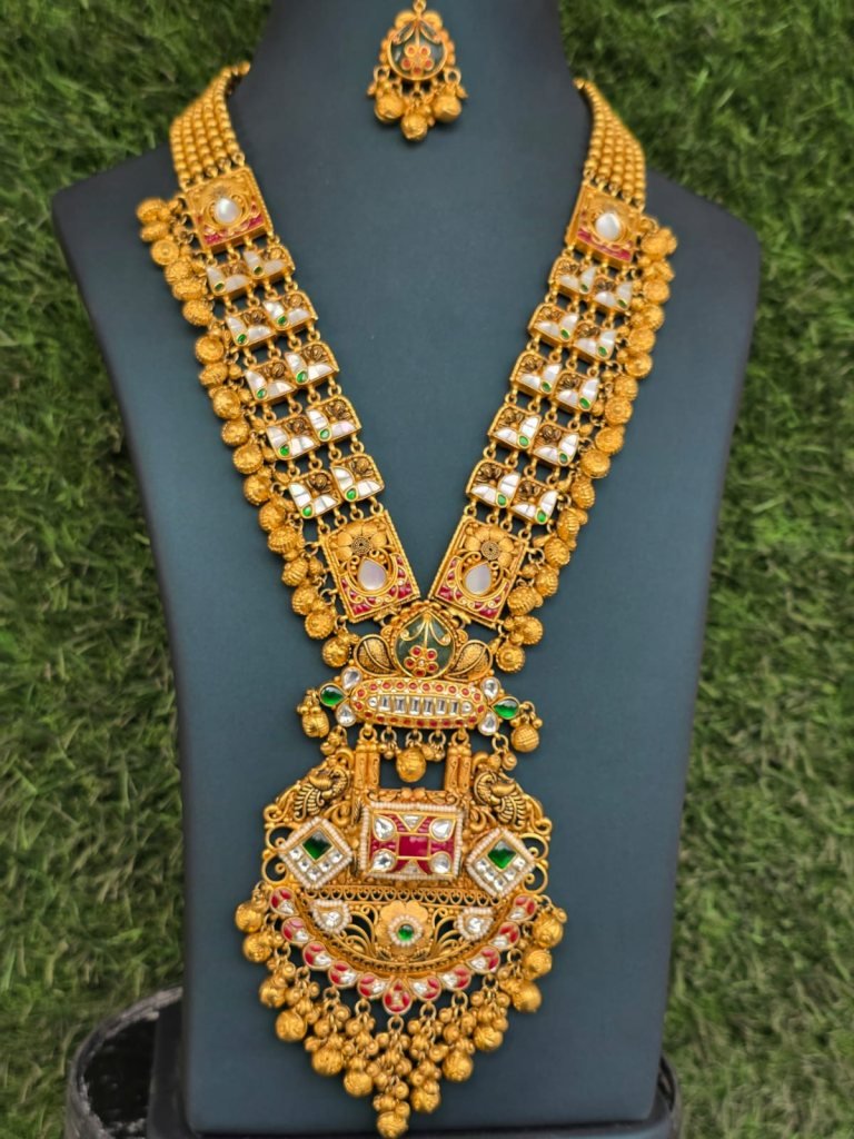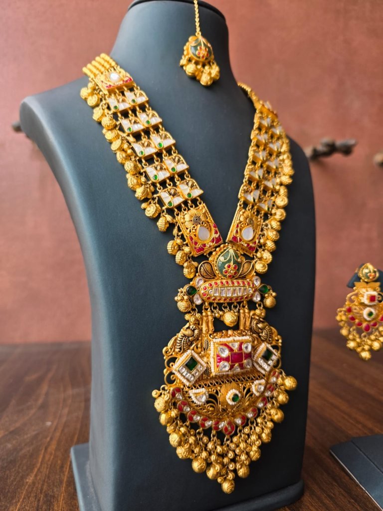 Inspired by South Indian and temple jewelry craftsmanship, this set is ideal for brides and women who love bold heritage pieces. Perfect for weddings, receptions, temple functions, and grand festive occasions, this jewelry set transforms any traditional outfit into a royal statement.