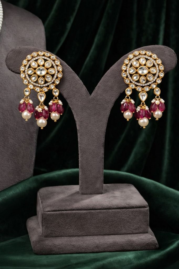 Pearl Kundan Choker Necklace Set with Ruby Drops – 92.5 Silver Gold Plated Traditional Jewellery
