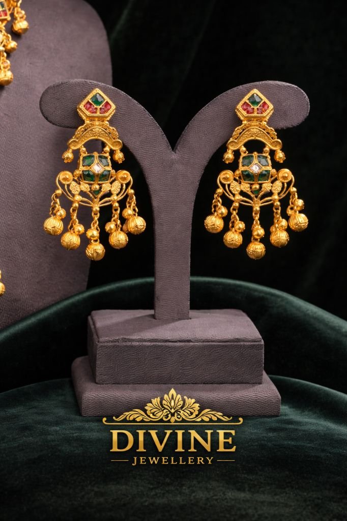 Rajwadi Meenakari Pendant Necklace Set with Pearl Strings & Temple Drops | 92.5 Silver Gold Plated Jewellery by Divine Jewellery