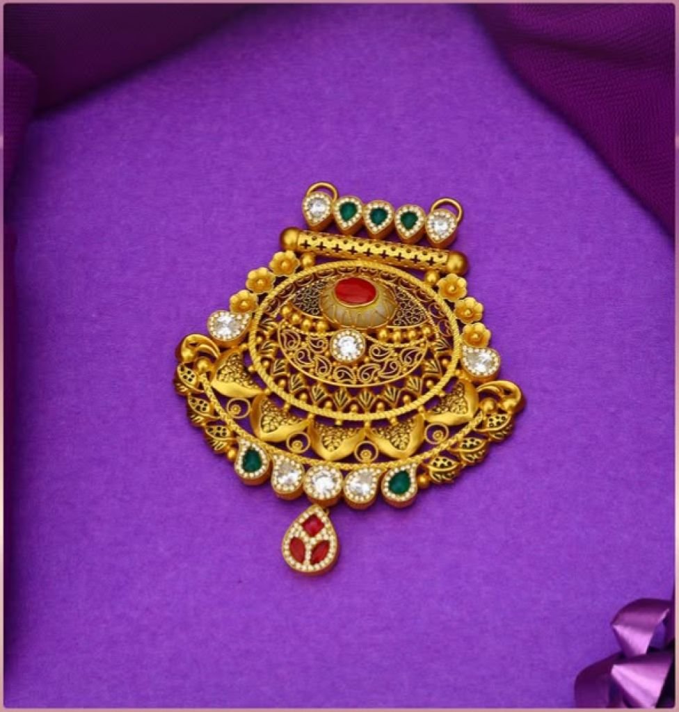 Elegant 92.5 silver gold-plated temple pendant featuring floral chakra design with kundan-style stones and intricate filigree work. Perfect for bridal and festive wear.