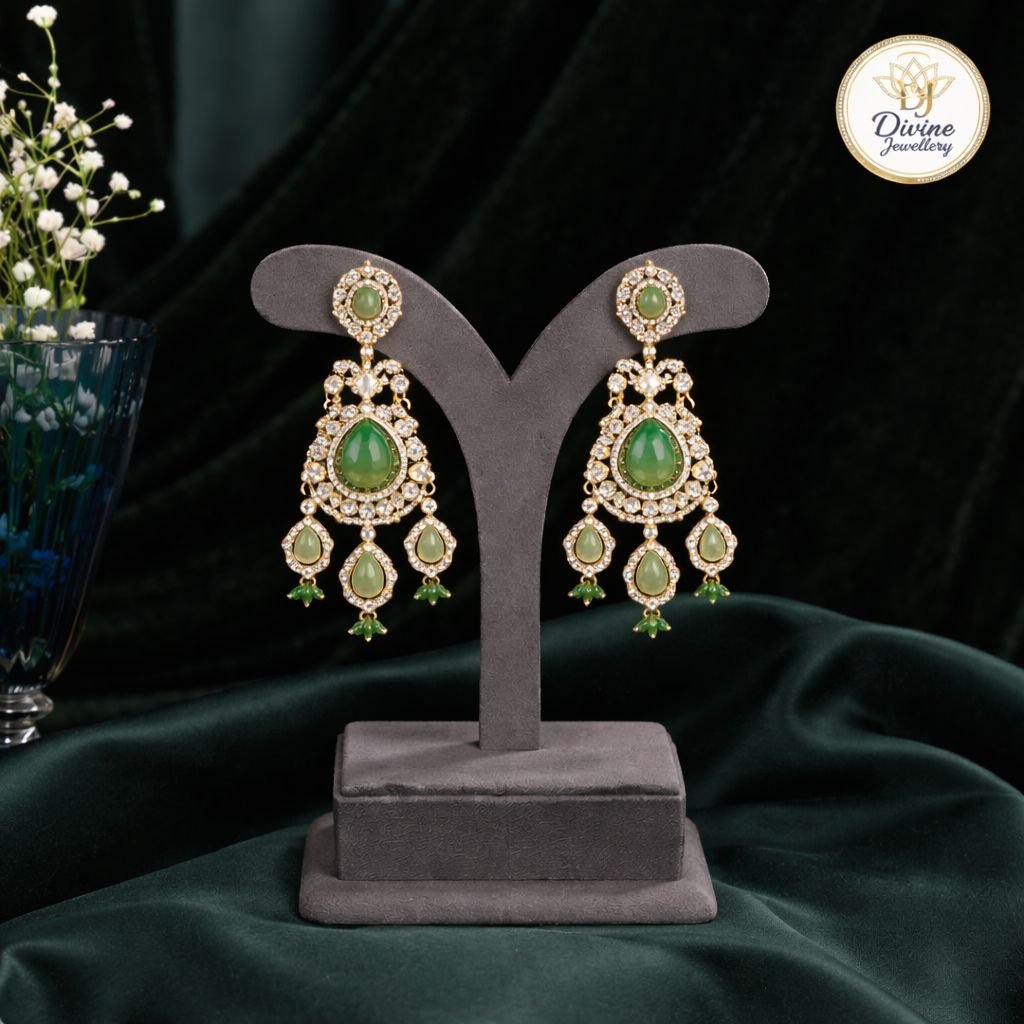 Royal Green Stone Choker Necklace Set with Kundan Work & Pearl Detailing – 92.5 Silver Gold Plated