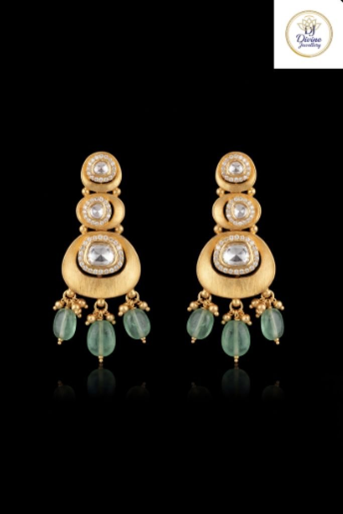 Royal Kundan Choker Necklace Set with Green Drops & Earrings – 92.5 Silver Gold Plated Bridal Jewellery | Divine Jewellery