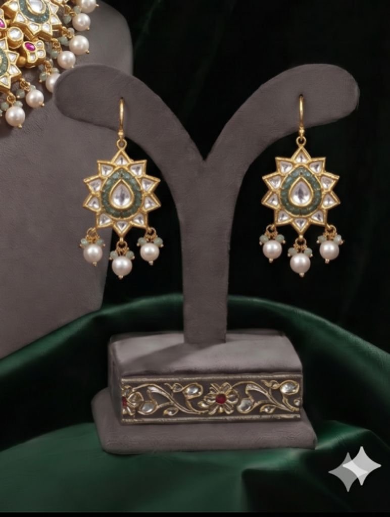 Royal Kundan Choker Necklace Set with Pearl Drops & Star Motif Design – 92.5 Silver Gold Plated
