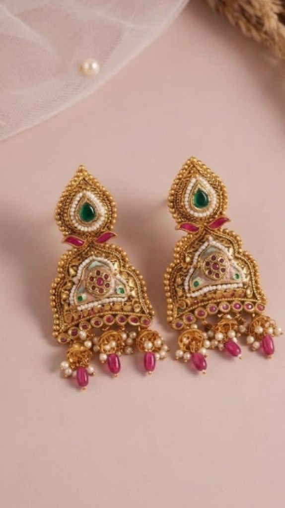 Royal Temple Heritage Long Necklace Set with Jhumka Earrings – 92.5 Silver Gold Plated Bridal Jewellery | Divine Jewellery