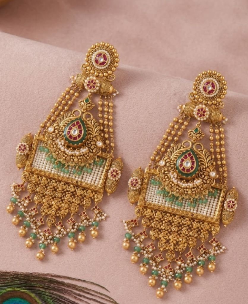 Royal Temple Layered Necklace Set with Statement Pendant & Earrings – 92.5 Silver Gold Plated Bridal Jewellery | Divine Jewellery