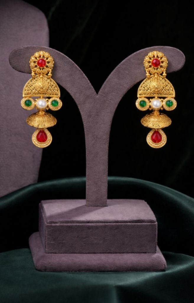 Classic temple-style necklace set with multilayer chains, intricate pendant, and elegant stone detailing in gold-plated 92.5 silver.