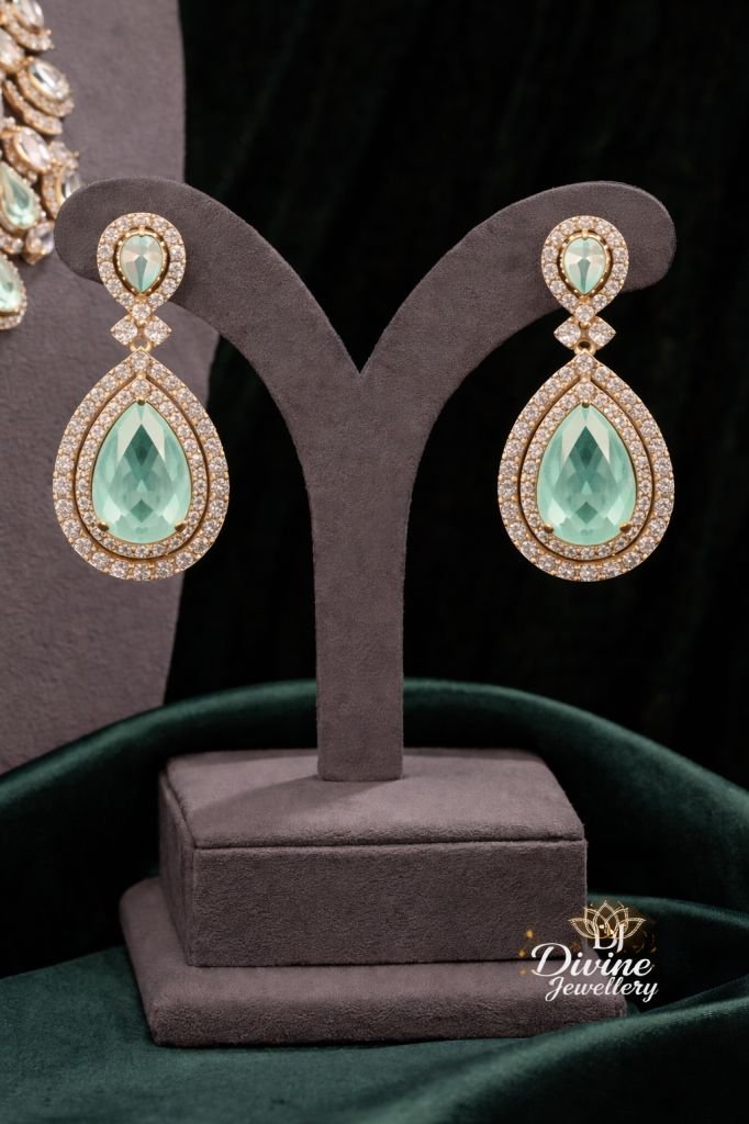 Aqua Crystal Drop Necklace Set with Statement Earrings – 92.5 Silver Rose Gold Plated Luxury Jewellery