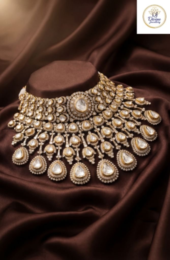Couture Polki Bridal Choker Necklace in 92.5 Silver Gold Plated – Divine Jewellery