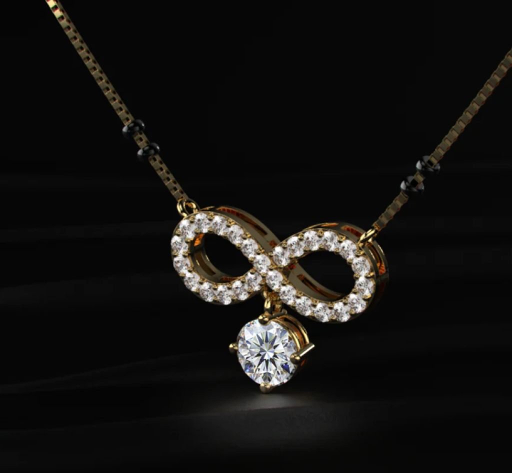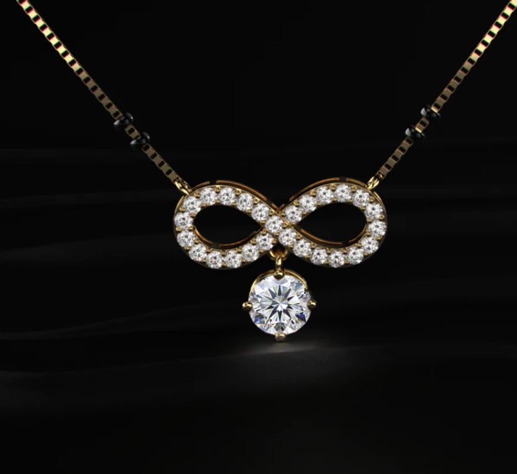DIVINE 92.5 Sterling Silver Infinity Mangalsutra – 14K Gold Plated Eternal Bond Pendant