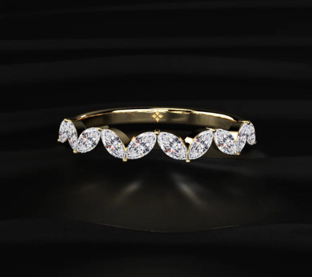 DIVINE 92.5 Sterling Silver Marquise Cut Wave Eternity Band