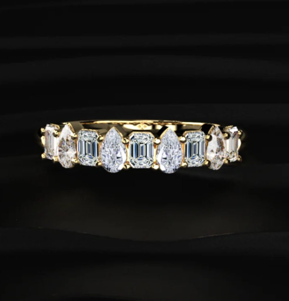DIVINE 92.5 Sterling Silver Mixed-Cut Eternity Band – Pear and Emerald Cut Multi-Stone Ring