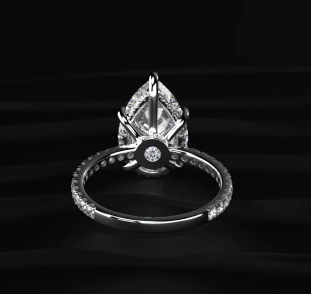 DIVINE 92.5 Sterling Silver Pear Cut Solitaire Ring – Platinum Plated Pave Band