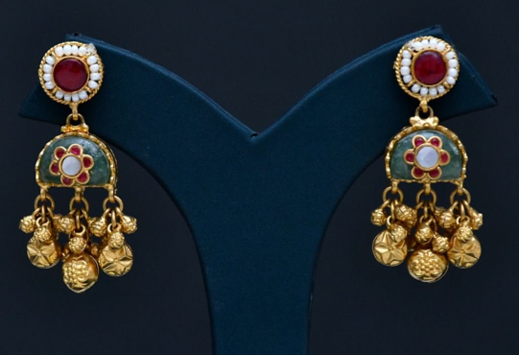 DIVINE Antique Temple Coin Necklace Set with Lakshmi Motif, Ruby-Meena Work & Heavy Gold Bead Danglers – Traditional Bridal Jewelry with Matching Earr