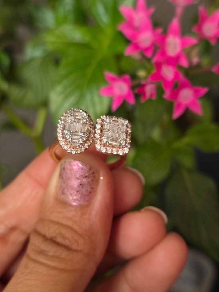 The DIVINE Dual Halo Twin-Cut Ring is crafted for women who love bold creativity and luxury detailing. This exclusive design features two distinct centerpiece clusters placed side-by-side – one rectangular and one oval – symbolising harmony between structure and softness.