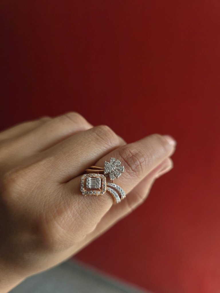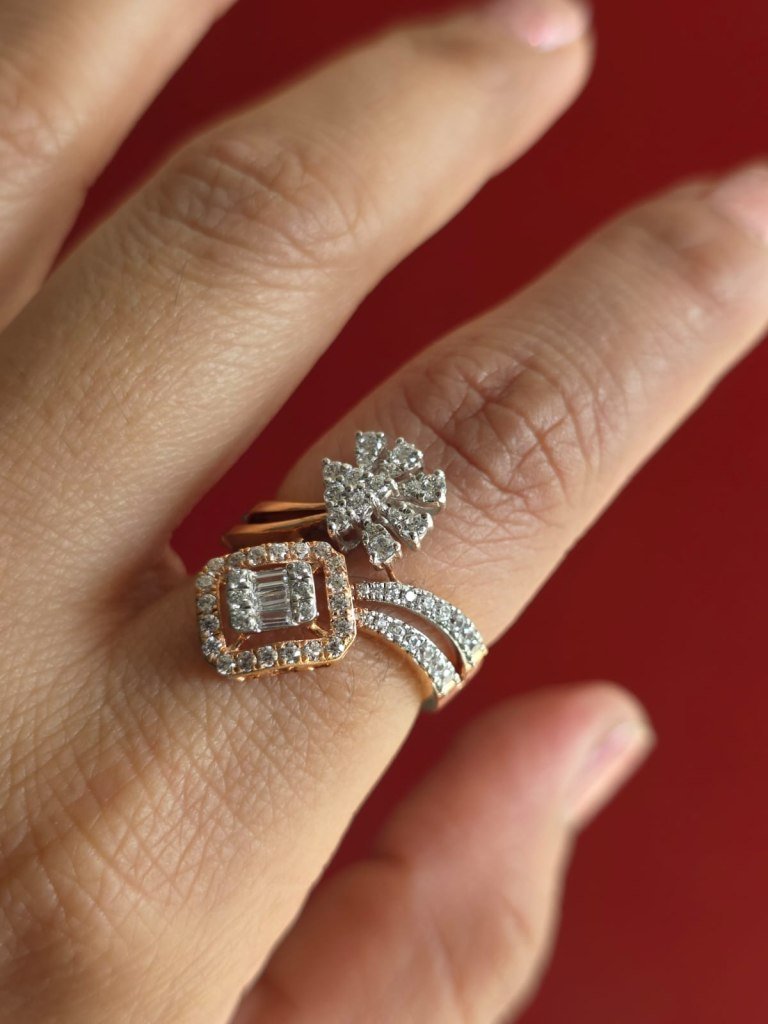 DIVINE Dual Style Designer Diamond Look Ring for Women – Luxury Party Wear Finger Ring