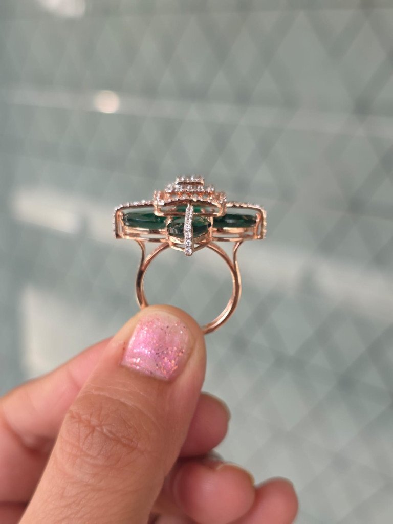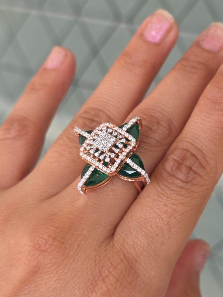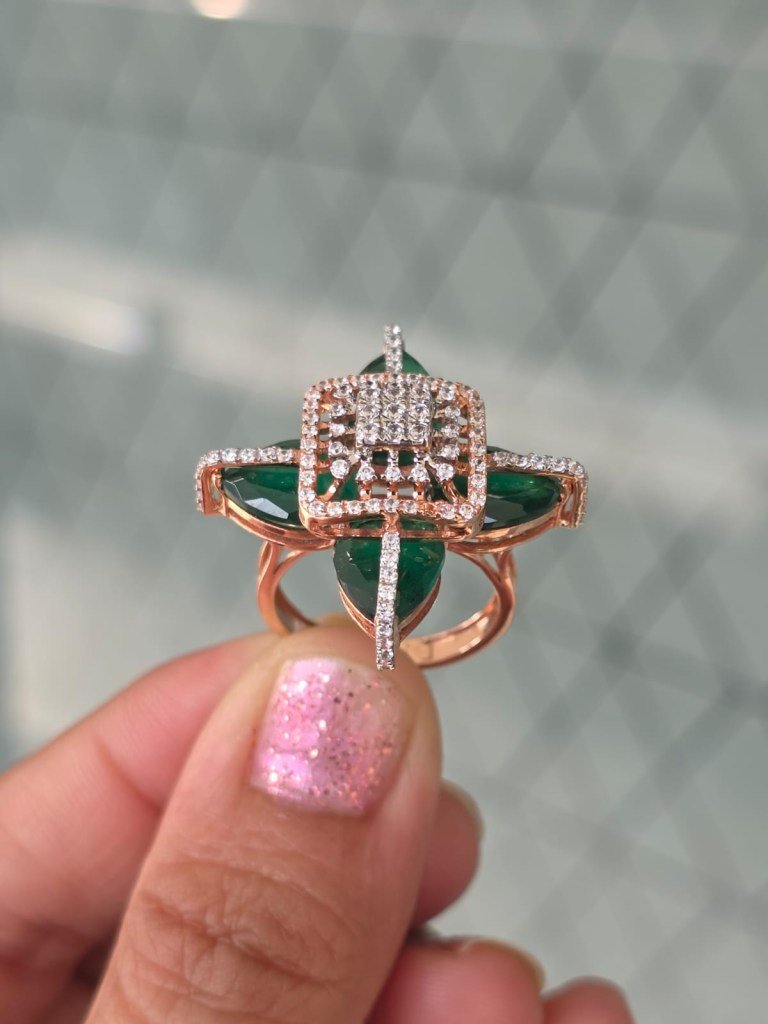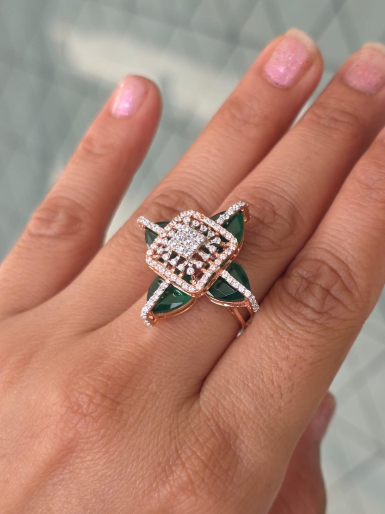 Step into bold luxury with the DIVINE Emerald Crossfire Ring, a striking masterpiece designed for women who love unique, high-fashion jewellery. This exclusive ring features rich emerald-green marquise crystals arranged in a crossfire pattern, crowned with a sparkling square halo of brilliant stones at the center.