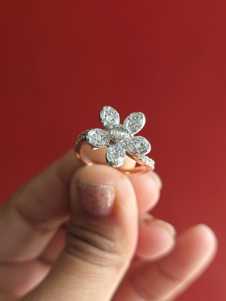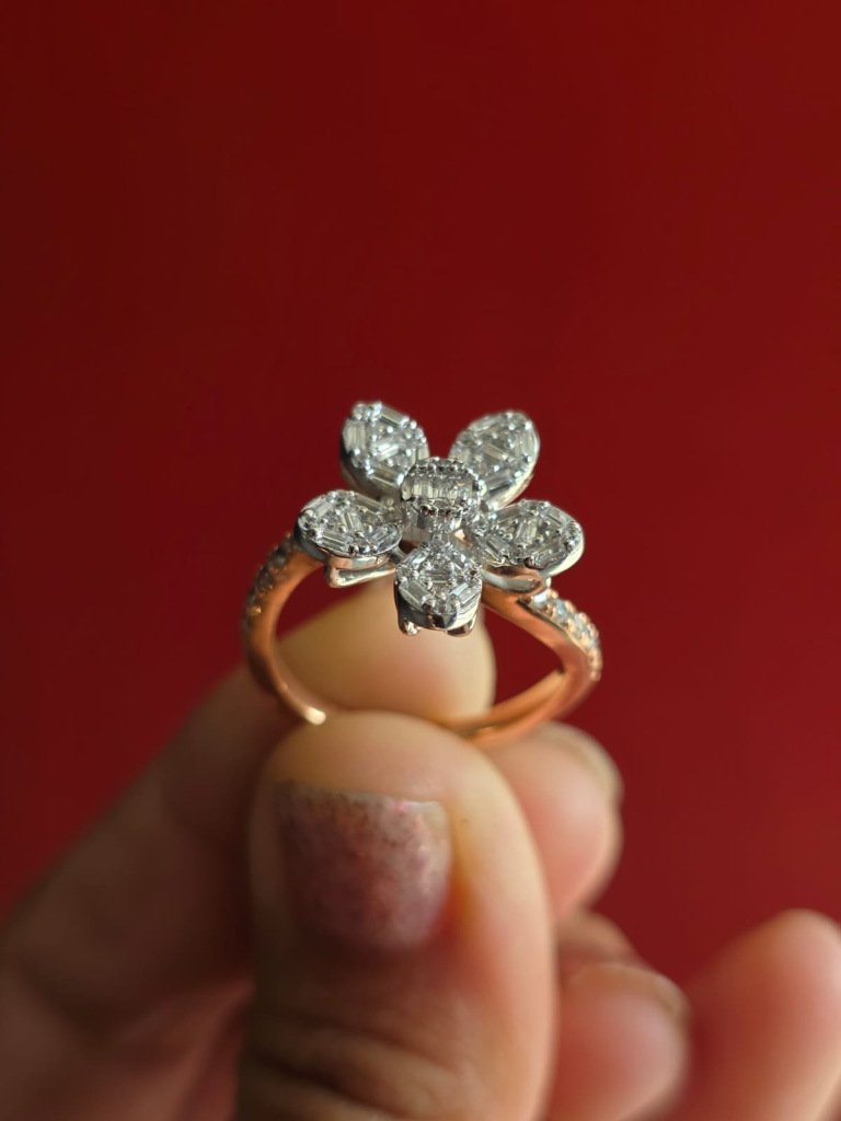 DIVINE Floral Baguette Bloom Designer Diamond Look Ring for Women