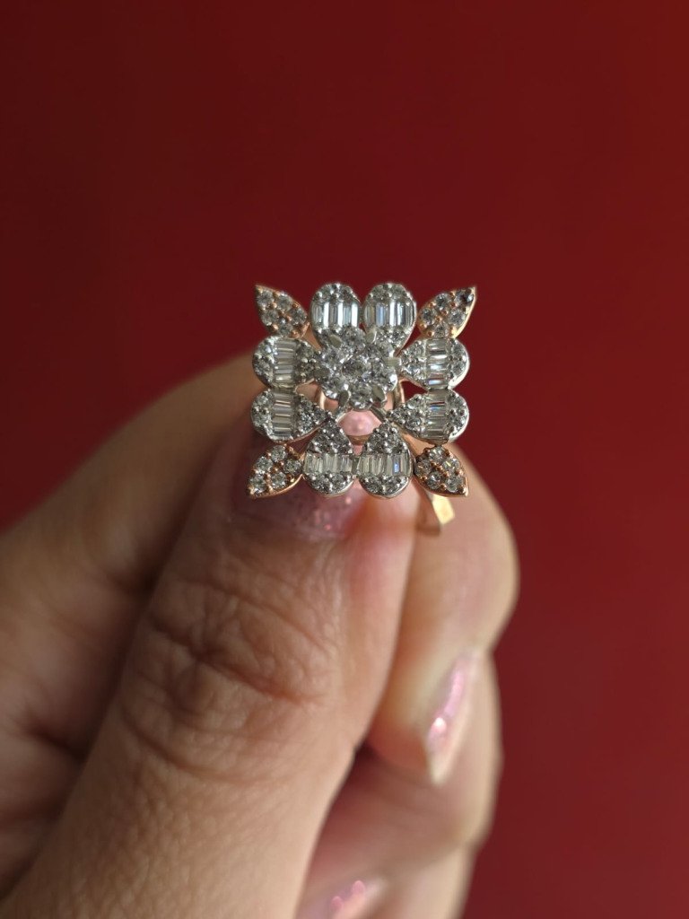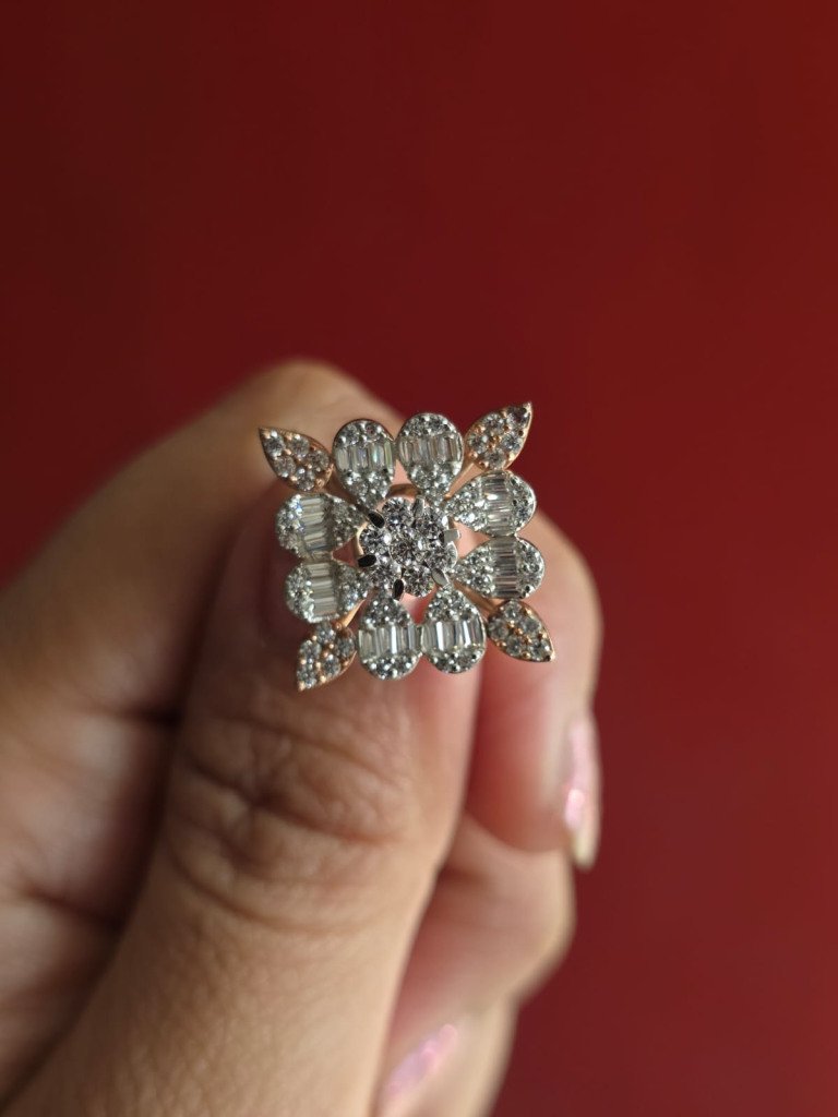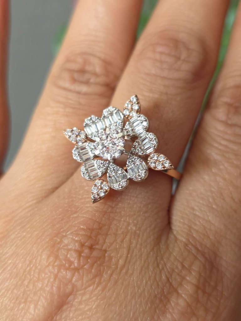 DIVINE Radiant Snowflake Bloom Ring – Baguette & Marquise Floral Cluster Luxury Rose Gold Ring for Women