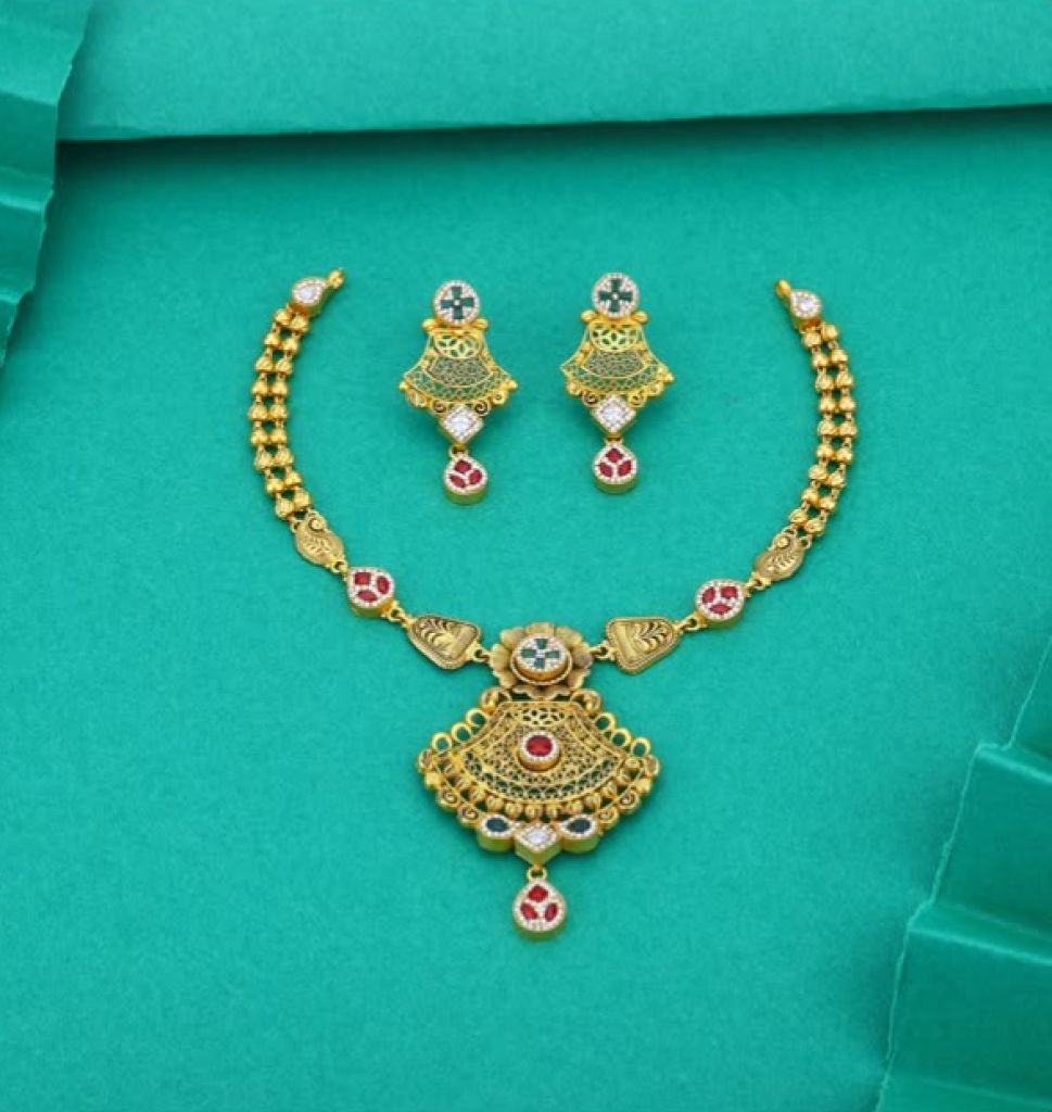 Divine Jewellery 92.5 Silver Gold Plated Traditional Necklace Set with Earrings – Antique Jali Temple Pendant Design