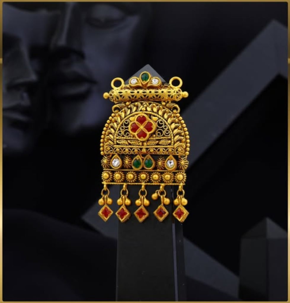Elegant temple-style pendant crafted in 92.5 silver with premium gold plating. Featuring intricate detailing with multicolor stone accents and hanging elements, perfect for festive and traditional wear.