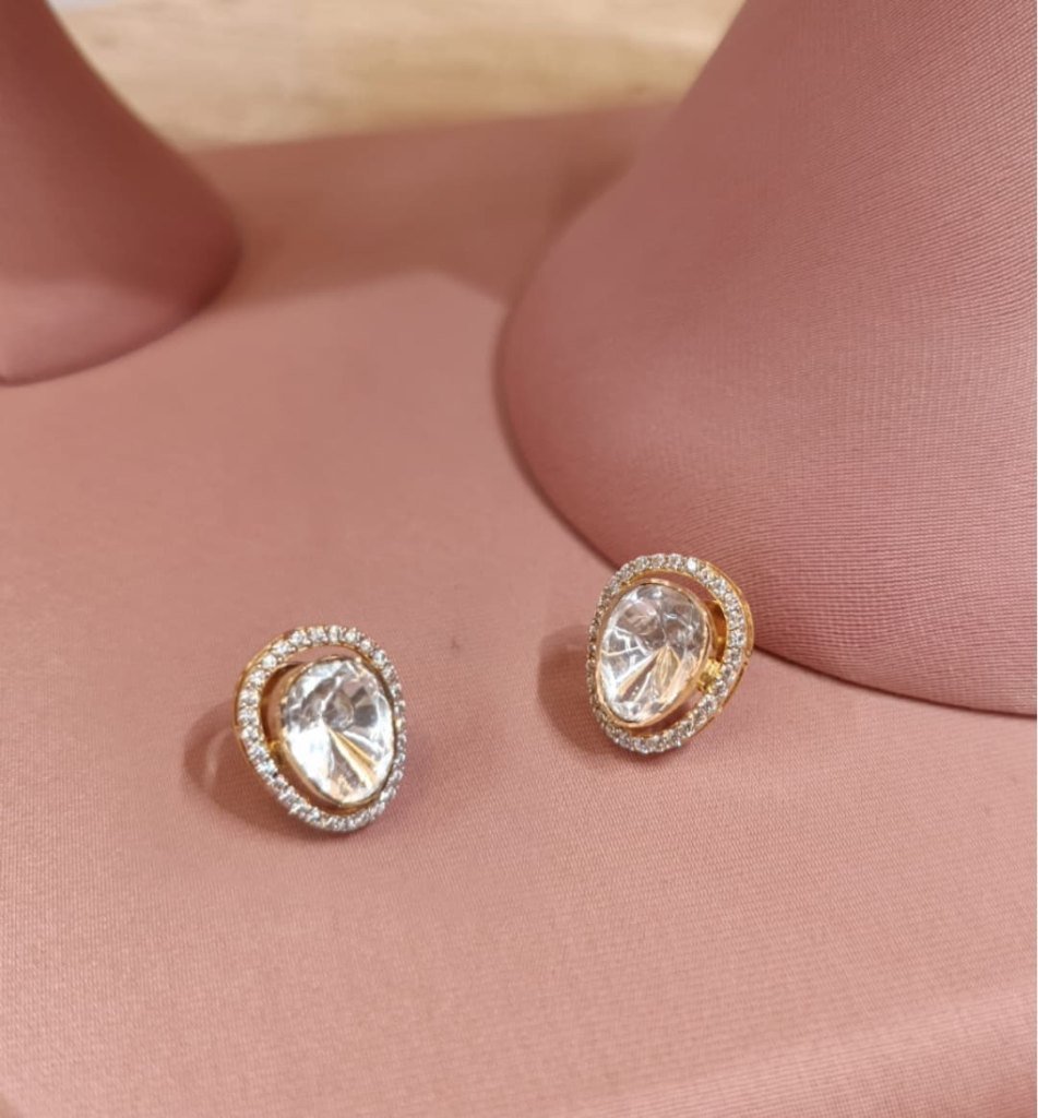 Divine Jewellery 92.5 Silver Gold Plated Polki Style Necklace Set with Stud Earrings | Elegant Minimal Designer Jewellery for Women