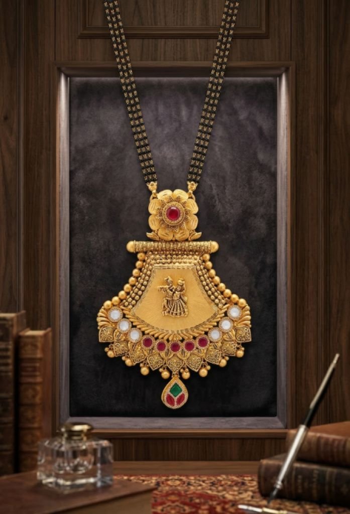 Divine Jewellery Antique Temple Mangalsutra with Lakshmi Motif Pendant and Ruby Emerald Accents
